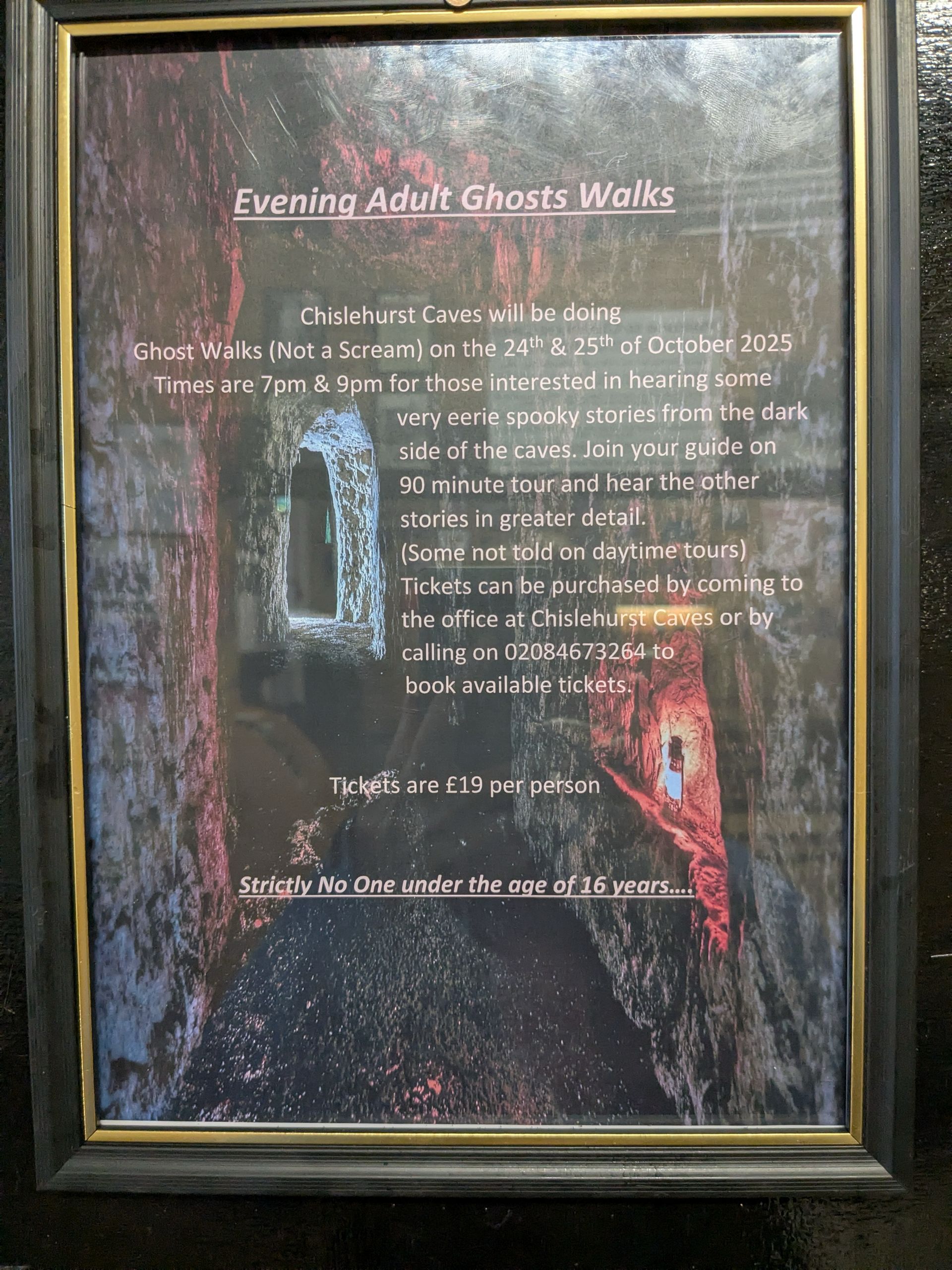 Last weekend I visited Chislehurst Caves for the first time ever, and I thought it was such a great experience! Not only was it amazing to tour the cave system and see what’s down there (so much, who knew?!), but discovering the cosy little cafe and gift shop was a treat in itself, too! If you’ve not been, I thoroughly recommend a trip, the guide was really engaging and it’s definitely fun for all the family. On the 24th, 25th, 31st Oct and 1st Nov, they are hosting ghost walks for over 16s, see details later in the newsletter.